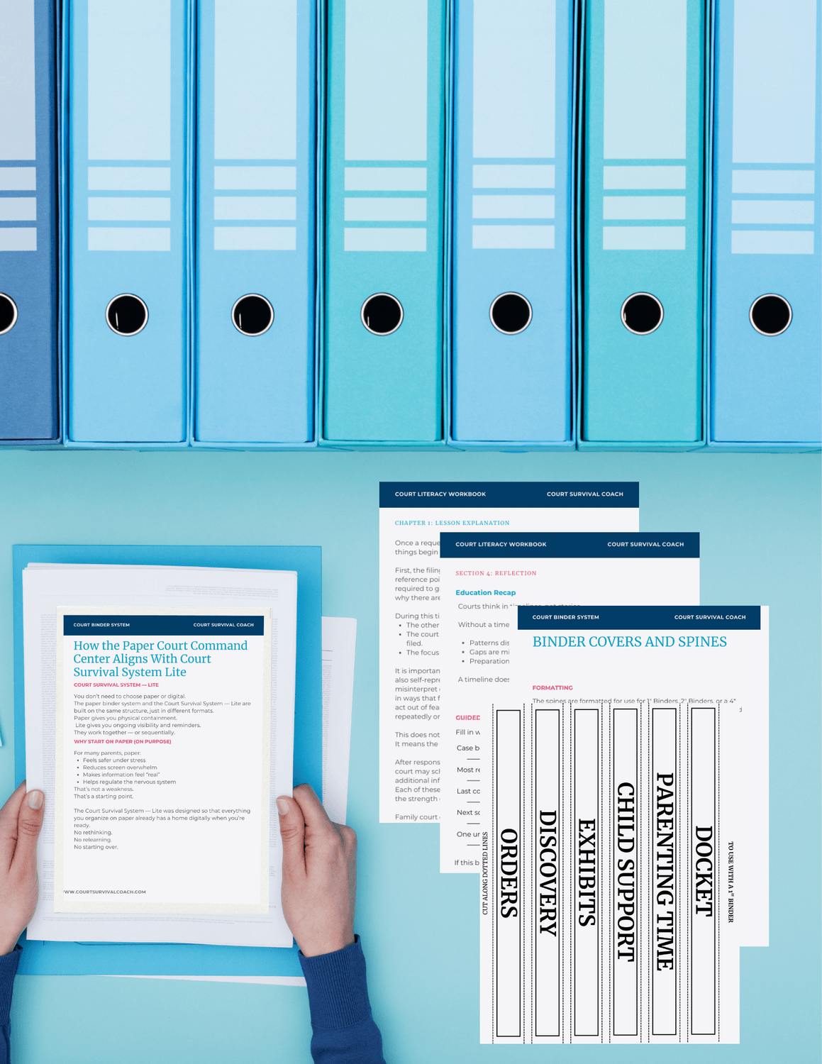 Court-aligned organization systems for parents navigating family court without an attorney.